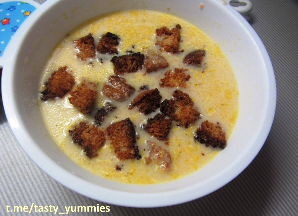1. Отварите картофель в мясном бульоне и измельчите в блендере. 2. Влейте в картофельное пюре сметану и сливки. Подогрейте, но не кипятите. 3. Добавьте соевый соус и сливочное масло. Посолите, поперчите. 4. Подавайте с гренками. Для их приготовления нарежьте белый хлеб кусками и обжарьте на сливочном масле