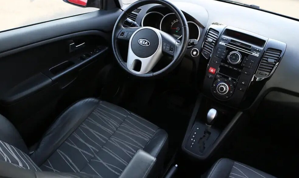 Интерьер у КИА Венга оформлен неплохо и даже в базовых комплектациях тут есть, за что зацепиться взглядом. В частности, достаточно много внимания привлекает организация блока климатической установки в виде круга, который состоит из шайбы регулятора температуры, клавиш. Далее я бы хотел отметить панель приборов, которая распределена по трем колодцам.