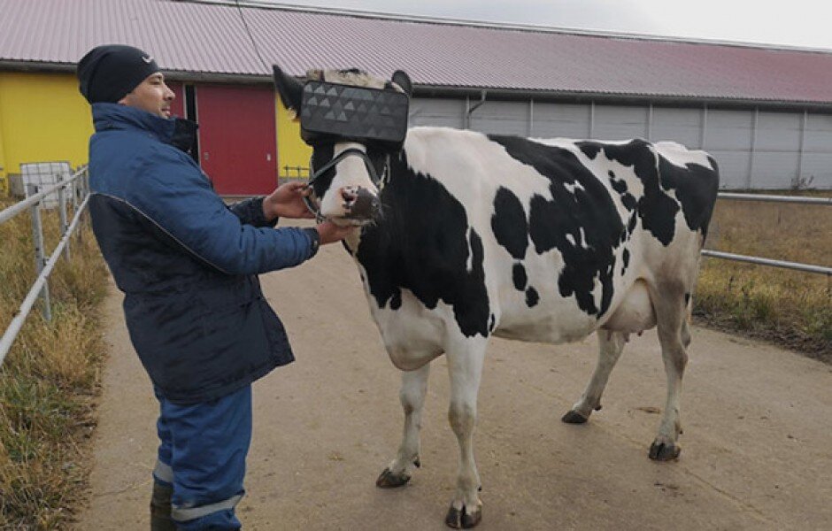 На ферме в окрестностях Красногорска Московской области проведены первые испытания очков виртуальной реальности (VR) для коров. Авторы новинки предполагают что животным в очках будет веселее, а веселая корова должна давать вкусное молоко.