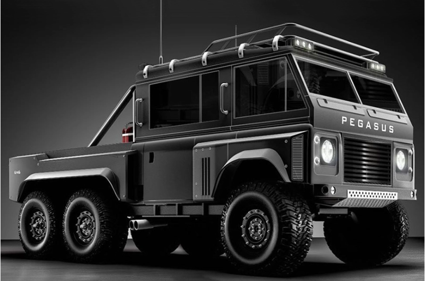 Вам будет сложно выделить детали, которые идентифицируют Pegasus как индивидуализированный Land Rover Defender. М. Дорук Эрдем задумал Land Rover Series III Defender как шестиколесного монстра с совершенно новым внешним видом.