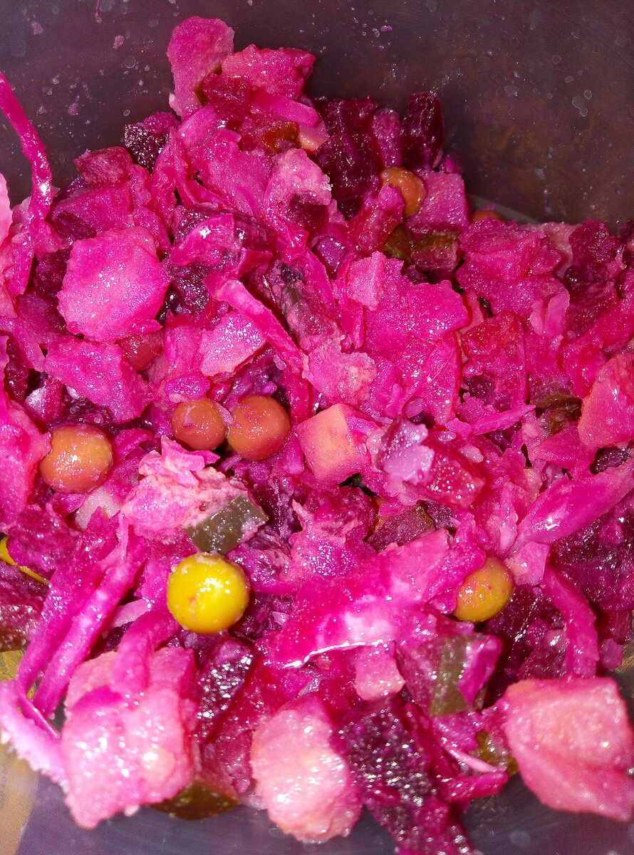 Сегодня 23 день, и он был преимущественно овощным. На обед на работе - хорошая порция винегрета, его я в принципе люблю, да к тому же это клетчатка, которую я катастрофически недобирала практически всю свою жизнь.