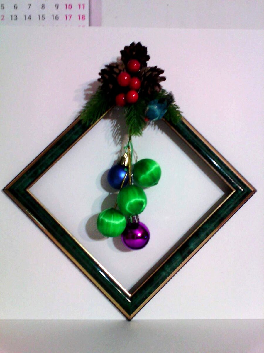 При создании всех композиций обязательно учитывался цвет рамки и ее размер. Например, в маленькой белой рамочке золотая елка смотрелась бы хуже, поэтому были выбраны детали серебряного цвета.