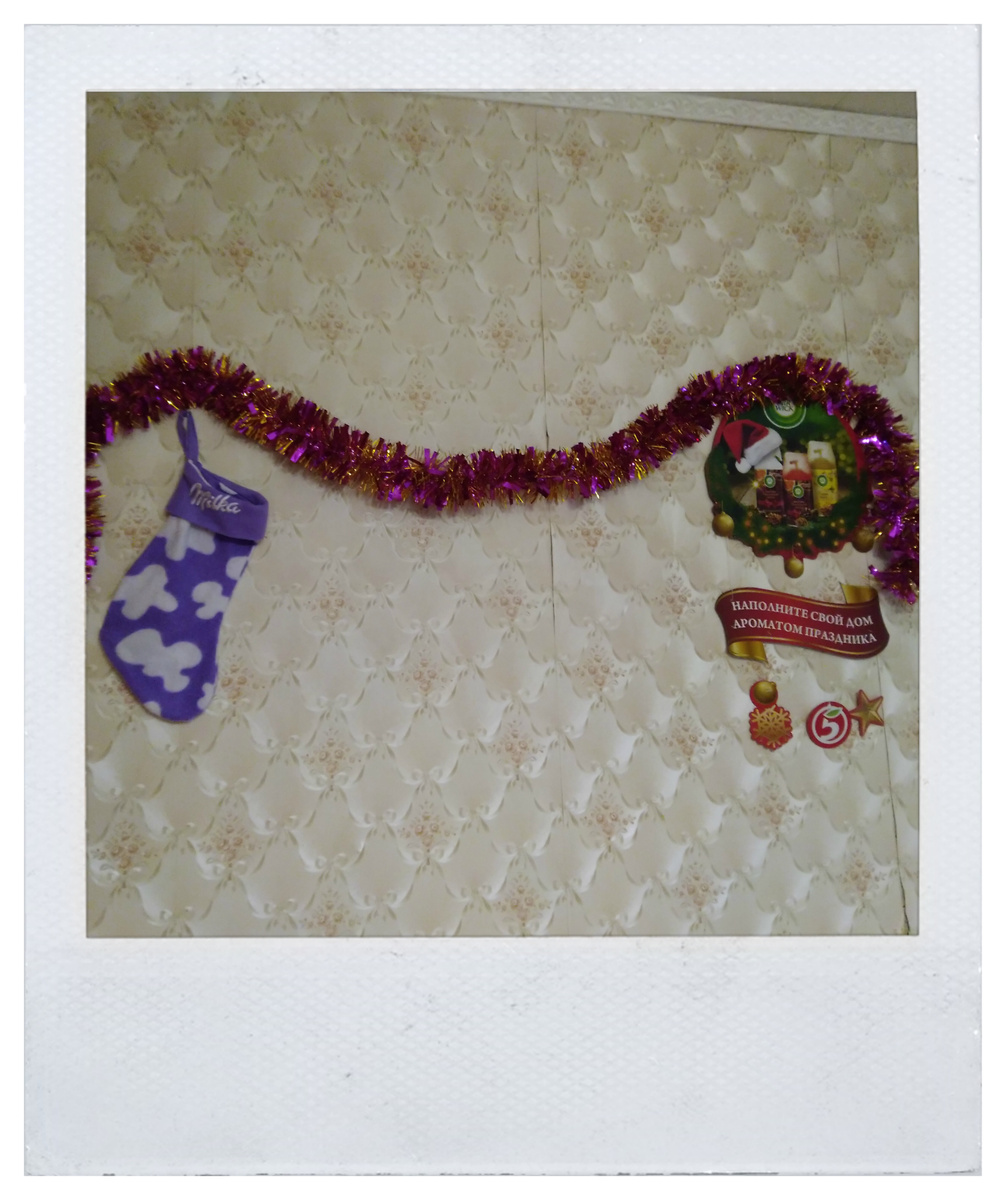 В декабре Илюне было уже восемь месяцев. Близился новый год, наступала пора наряжать елку. Зная не понаслышке про любовь кошек к опрокидыванию елки, мы за ранее готовились к тому, что и Илюша проявит к этому интерес. Но елочка у нас не большая, да и игрушки пластиковые, поэтому мы не сильно переживали, что уронит. По мимо елочки, мы с мужем решили немного украсить квартиру. Хотели повесить на стену украшение с висюльками, но долго оно не прожило. Любопытный и ловкий Илюша заинтересовался висюльками и в итоге все их по отрывал. Решили ограничиться украшениями в виде новогоднего носка и м