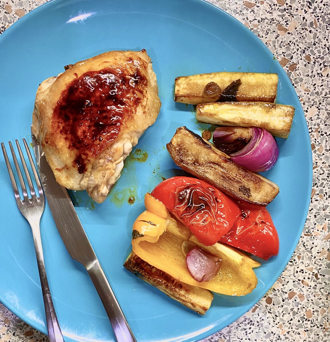 Печёные овощи по рецепту Джейми Оливера, книгу которого я с огромным удовольствием штудирую. Ну и курочка для тех, кого одними кабачками не прокормишь😁 Я обожаю овощи, особенно если их правильно запечь, а сочетание азиатских приправ любой еде добавляет восхитительный акцент.