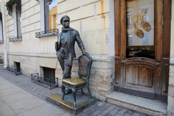 Скульптура Остапа Бендера на Итальянской улице у дома №5 по пл. Искусств. Дабы получить финансовое благополучие, великому авантюристу надо потереть нос.
