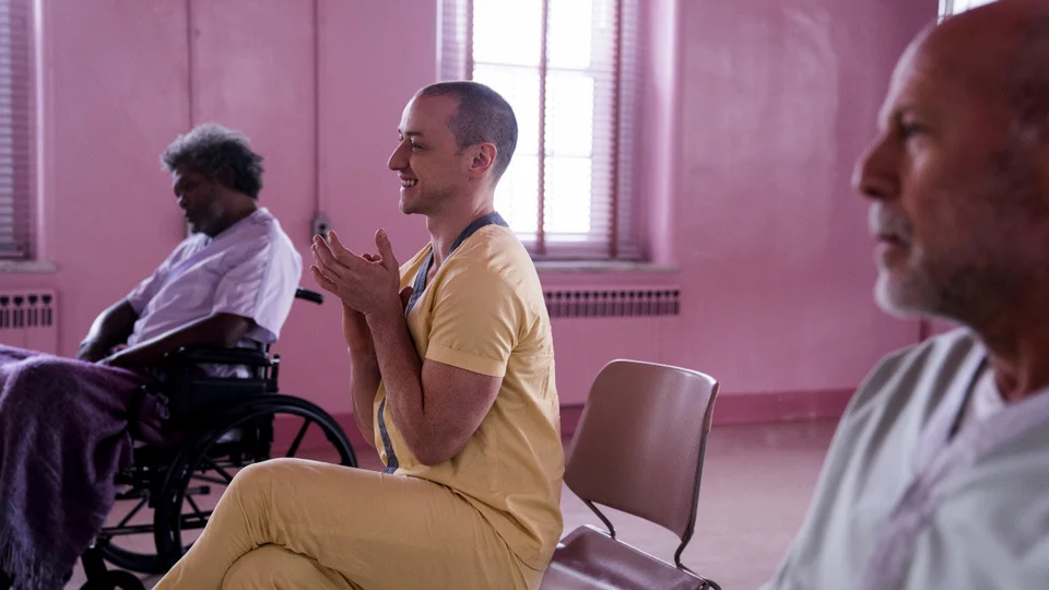 «Американская история ужасов» . Режиссер поправил свою репутацию фильмом "Сплит", в конце которого намекнул на новый проект: в одной лечебнице оказываются герои Брюса Уиллиса и Самюэла Л. Джексона и, собственно, персонаж МакЭвоя из «Сплита». Как администрации могло прийти в голову разместить столько опасных людей в одном помещении, узнаем из фильма.
