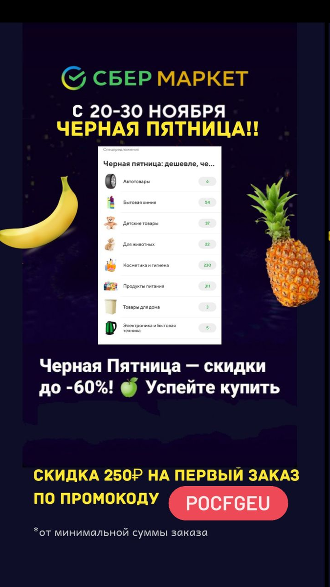 В Сбермаркет с 20-30 ноября Чёрная пятница!🔥Ищи товары в специальном разделе Черная пятница и покупай с выгодой!