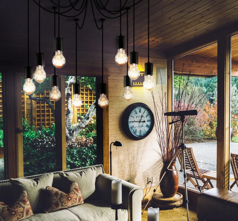 Поскольку лампы в большинстве вариантов этих необычных светильников находятся в открытом состоянии, даже если они частично прикрыты плафонами, предпочтение отдают специальным разновидностям источников света. Люстрам с мягкими ножками из свободно свисающих проводов подойдут шарообразные лампы. Металлические коленчатые штативы с небольшими абажурами допускают установку вытянутых цилиндрических или свечеобразных лампочек. Особо пикантно выглядит люстра «паук», если в разных патронах сочетать источники света отличающейся формы.