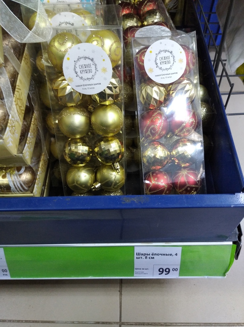 Представлены два комплекта. В первом по 12 шаров (4 см), а во втором – по 4 штуки (8 см), они крупнее. Состав: полистирол, полиэстер. Красивые, яркие, блестящие шарики станут отличным украшением для вашей новогодней елки.