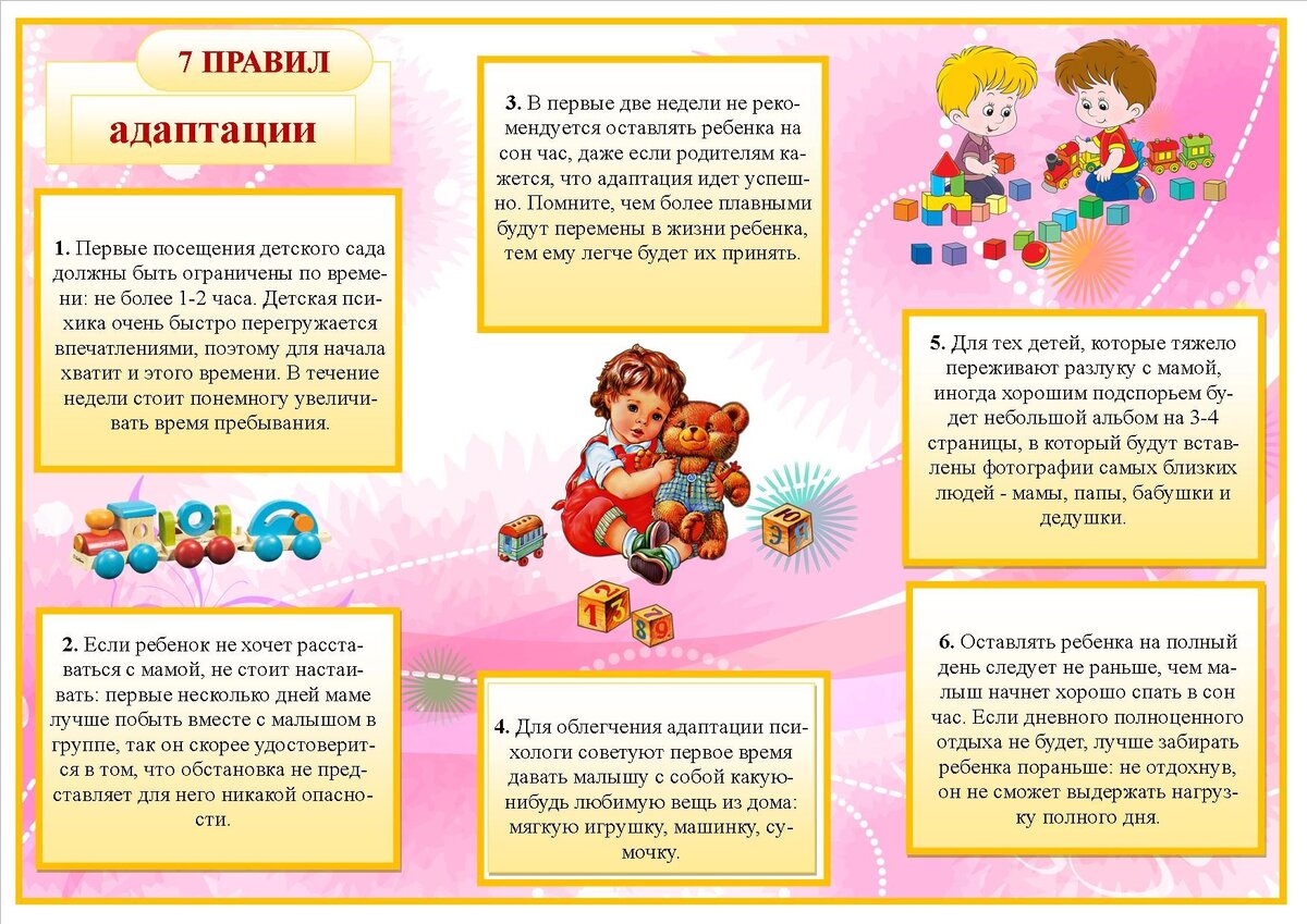 В первые недели ребенок сталкивается с совершенно новым окружением. Сложности адаптации усугубляются еще и тем, что родителей нет рядом. Малышу надо привыкнуть к тому, что теперь в качестве наставников, заменяя маму и папу, выступают совершенно чужие (поначалу) люди, освоить новые правила, подстроиться к иному распорядку дня. Он должен научиться ладить с другими детьми, правильно ориентироваться и действовать в непривычных для него ситуациях.
