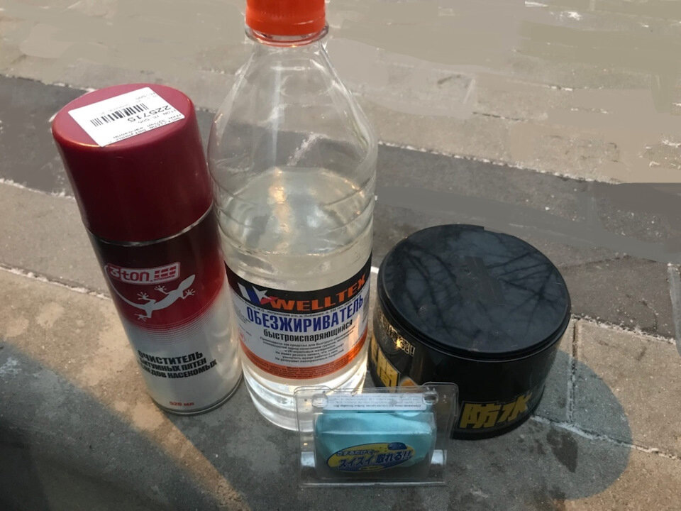 Далее все полностью обезжириваем и наносим средство Fusso с помощью губки из комплекта.