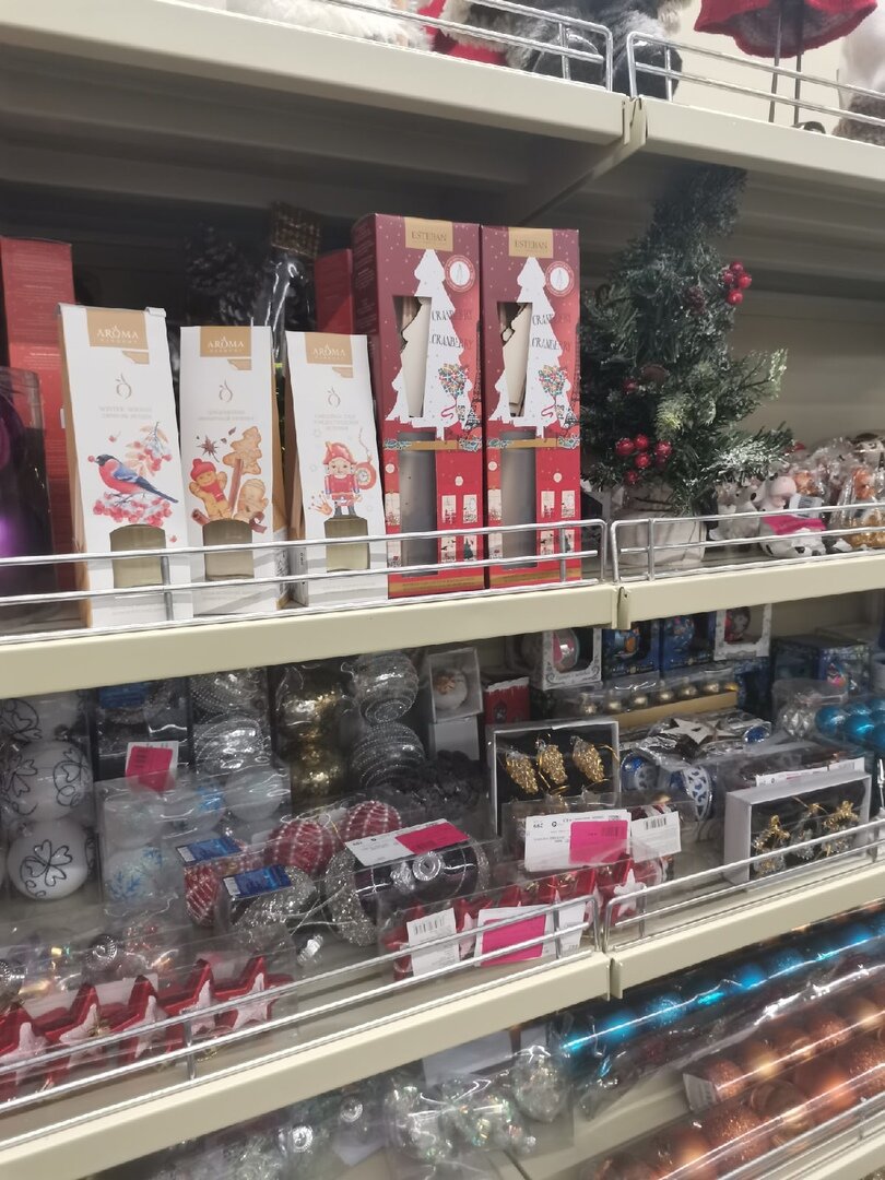 Сразу обмолвлюсь, что магазин увеличил процент скидки на новогодние товары. На старте продаж они имели одну стоимость, потом нам предложили купить их со скидкой в 20%, а сейчас уже процент вырос до 40. С такой экономией даже не надо откладывать покупку, можно встретить Новый год с новым набором елочных игрушек и украшений в принципе, коих в ассортименте предостаточно. Я сама не особо готовлюсь к этому празднику, но посмотреть было приятно.