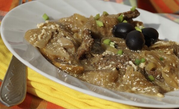 Лангет из говядины с грибами подаем как самостоятельное блюдо, украсив зеленью и оливками. Приятного аппетита!