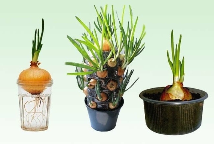 Если есть возможность, лучше заготовить землю загодя, купить или сделать контейнер (да хотя б из той же пластиковой бутылки) и посадить лук традиционным способом. Ну если такой возможности нет, то и в водичке можно.