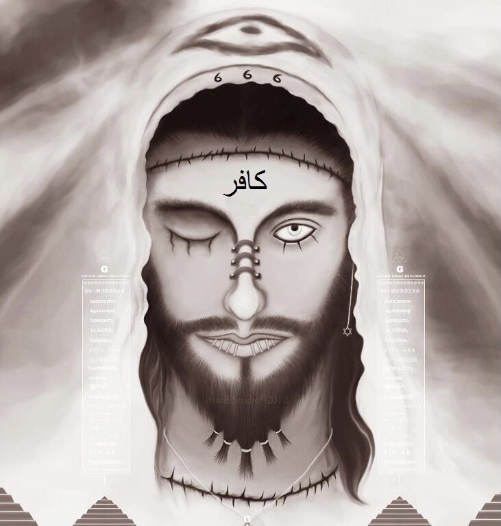 Арабские буквы кяф-фа-ра, означающие «неверный»