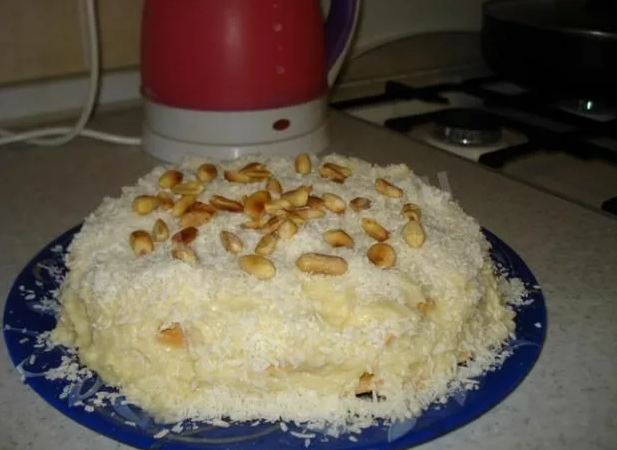 Торт кокосовый прекрасно выглядит на праздничном столе и его приготовление не займет много времени.