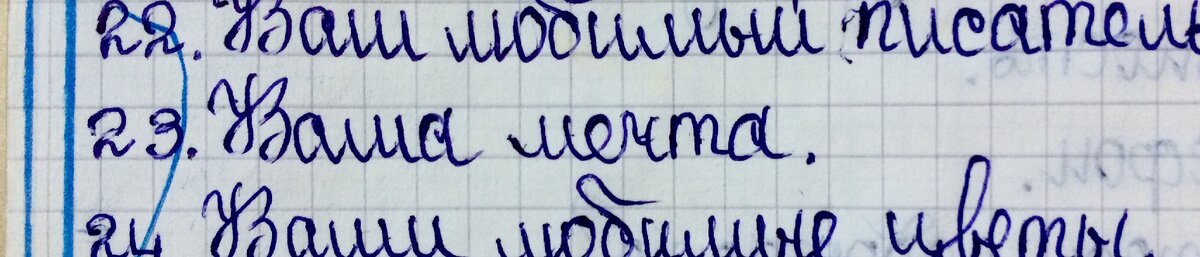 В статье «Какие фильмы, мультфильмы и актёры нравились детям в конце 80-х» я показывала свою анкету, которая сохранилась у меня со школьных времён.