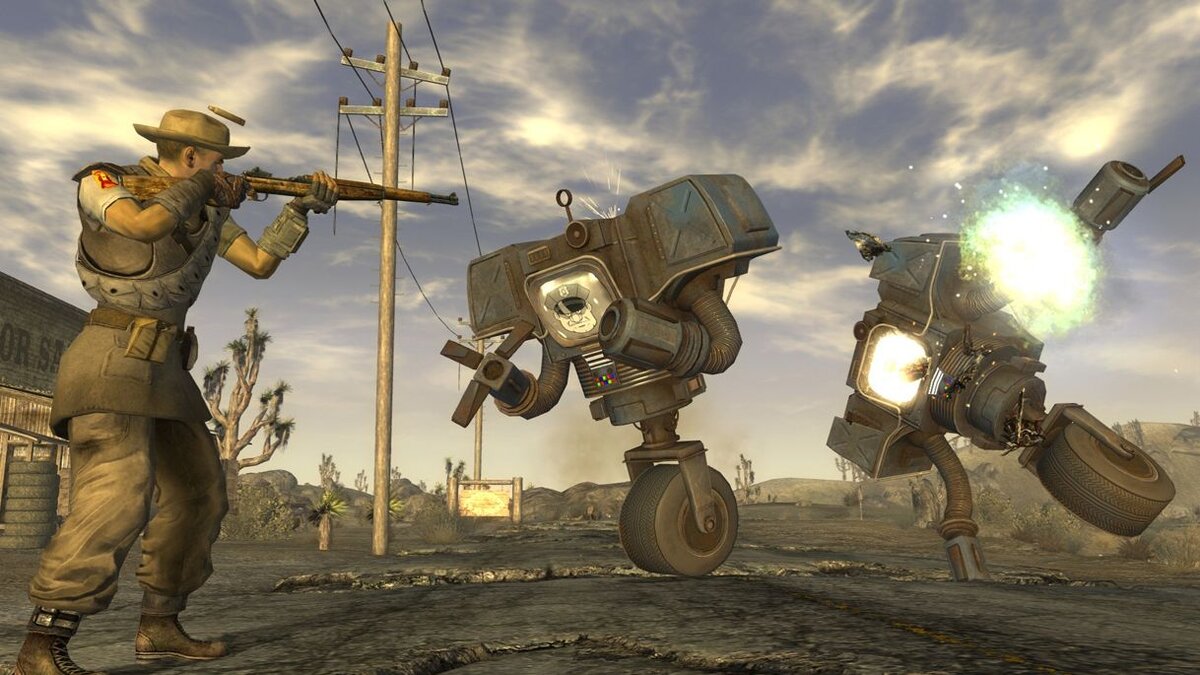 Выйдя на улицу, увидим робота передвигающегося по дороге. Благодарим его за помощь и немного расспрашиваем про бандитов, которые напали на нас. Отправляемся в салун. Чтобы отметить путь, выбираем задание по умолчанию в инвентаре. Сразу при входе нас встречает Санни. Просим обучить нас вживанию в пустыне. Она соглашается и предлагает пройти за салун. Получив винтовку, целимся по бутылкам и простреливаем ровно три штуки. Далее она предлагаем продолжить обучение, мы соглашаемся и следуем за ней. Добравшись до водоема, убиваем маленьких тварей при помощи V.A.T. S. Говорим с Санни и соглашаемся на очистку еще двух водоемов. Получаем награду и отправляемся на следующее задание.