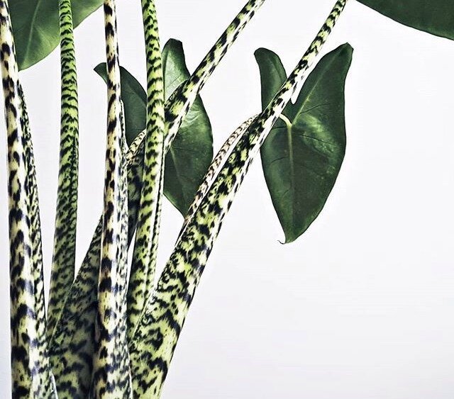 Алоказия Зебрина – один из главных хитов уходящего года и настоящая звезда Инстаграма. Свое название сорт получил из-за необычной окраски стеблей, напоминающей шкуру зебры.