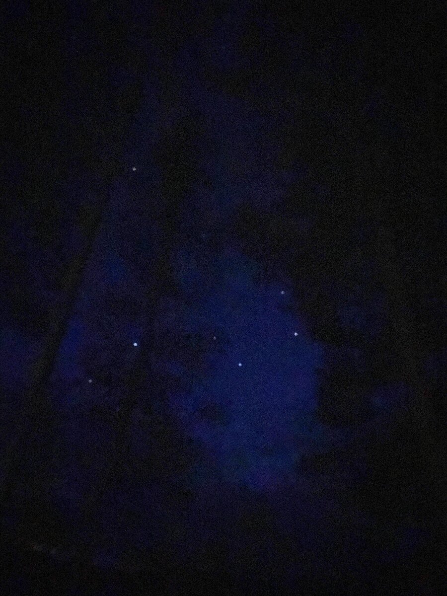 Высмотрев на карте ближайшее озеро побольше, решили разбить лагерь около него. Было уже за полночь. В свете фар отыскали более менее ровный участок и поставили палатки. Все, что было видно - это звезды и слегка поблескивающее зеркало озера.