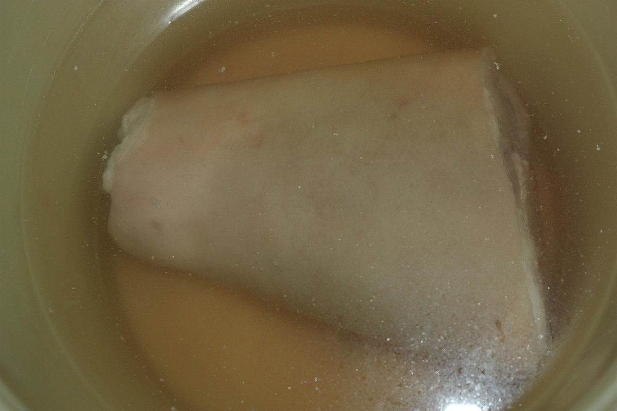 Замочить рульку на несколько часов. Это должно сделать кожу мягче. Если на коже осталась щетина, ее надо сбрить.