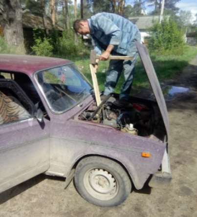 Самый бюджетный вариант ремонта автомобиля, взял молоток, гвозди и приколотил доски к машине