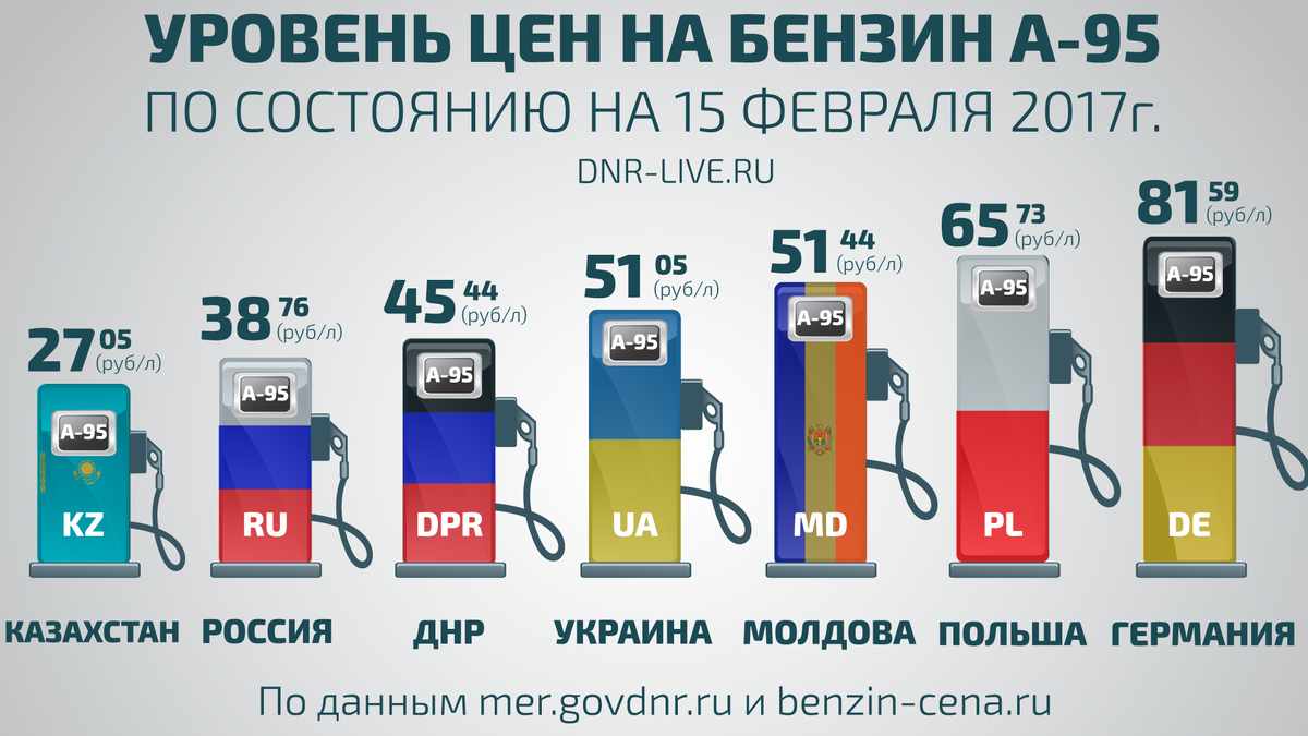 Что происходит с ценами на нефть и бензин. В феврале средняя цена на российскую нефть Urals составляла $54,53, а к 6 мая цена нефти этой марки опустилась до $24,8 за баррель (причем в апреле Urals дешевела до минимума с 1999 года, до $10,5). Снизились и оптовые цены на бензин — с 1 февраля стоимость АИ-92 упала на 11% до 39 970 рублей за тонну на Санкт-Петербургской международной товарно-сырьевой бирже. Но стоимость литра на заправке почти не меняется. По данным ЦДУ ТЭК, на 3 мая по сравнению с первой неделей февраля средняя розничная цена литра бензина марки АИ-92 сократилась на шесть копеек — до 43 рублей, марки АИ-95 — на три копейки, до 46,07 рубля, летнего дизтоплива выросла почти на 30 копеек до 47,38 рубля.