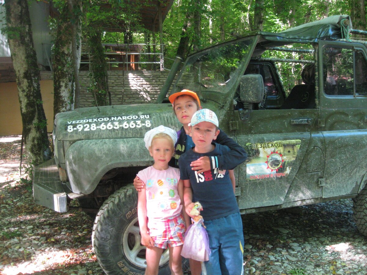 Зато с тремя старшими мы совершили поистине безбашенную вещь, - мы рванули на Пшадские водопады. На "джипе". Кто был на море, тот знает, что под "джипы" в Краснодарском крае мимикрируют наши родные уазики. Но надо сказать, передвижение на этом чуде советской автотехники по пересеченной местности, оставляет после себя незабываемые впечатления.
