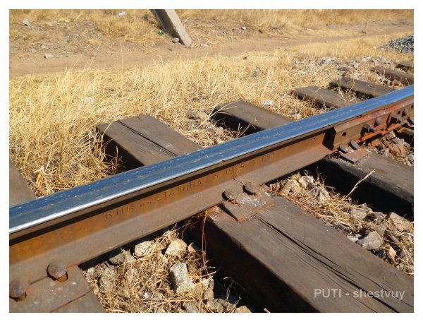 Этот рельс с надписью «КМК имени Сталина 1949 Р43» находится рядом с Борзинским элеватором. Скорее всего в 50-е годы XX века рельсы этой серии были уложены здесь, на подъездных путях.