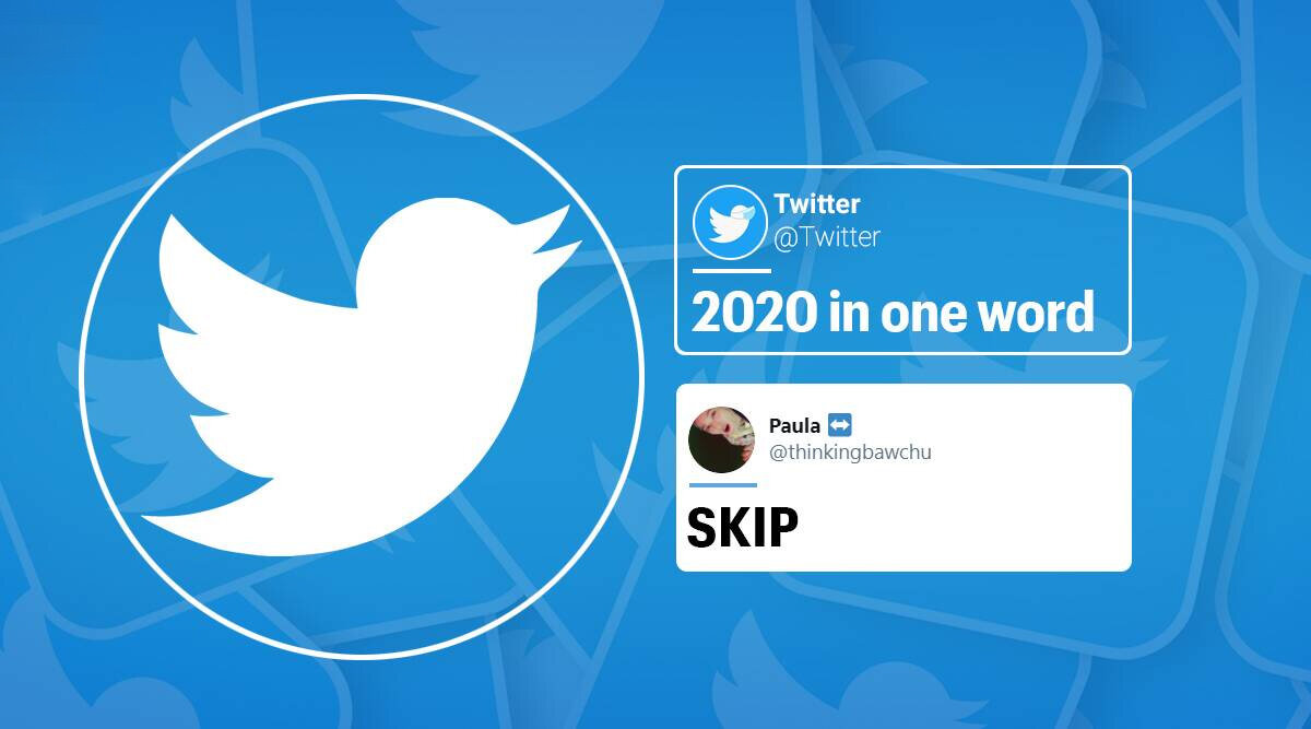 Компания Twitter следит за трендами и видит, какие настроения бродят сейчас по планете. Социальная сеть решила, что пора всем заявить о себе. Твиттер предложил каждому описать 2020 год одним словом.