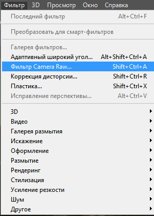 Здесь стоит заметить: Если у вас jpeg файл,переходим Фильтр-Camera Raw