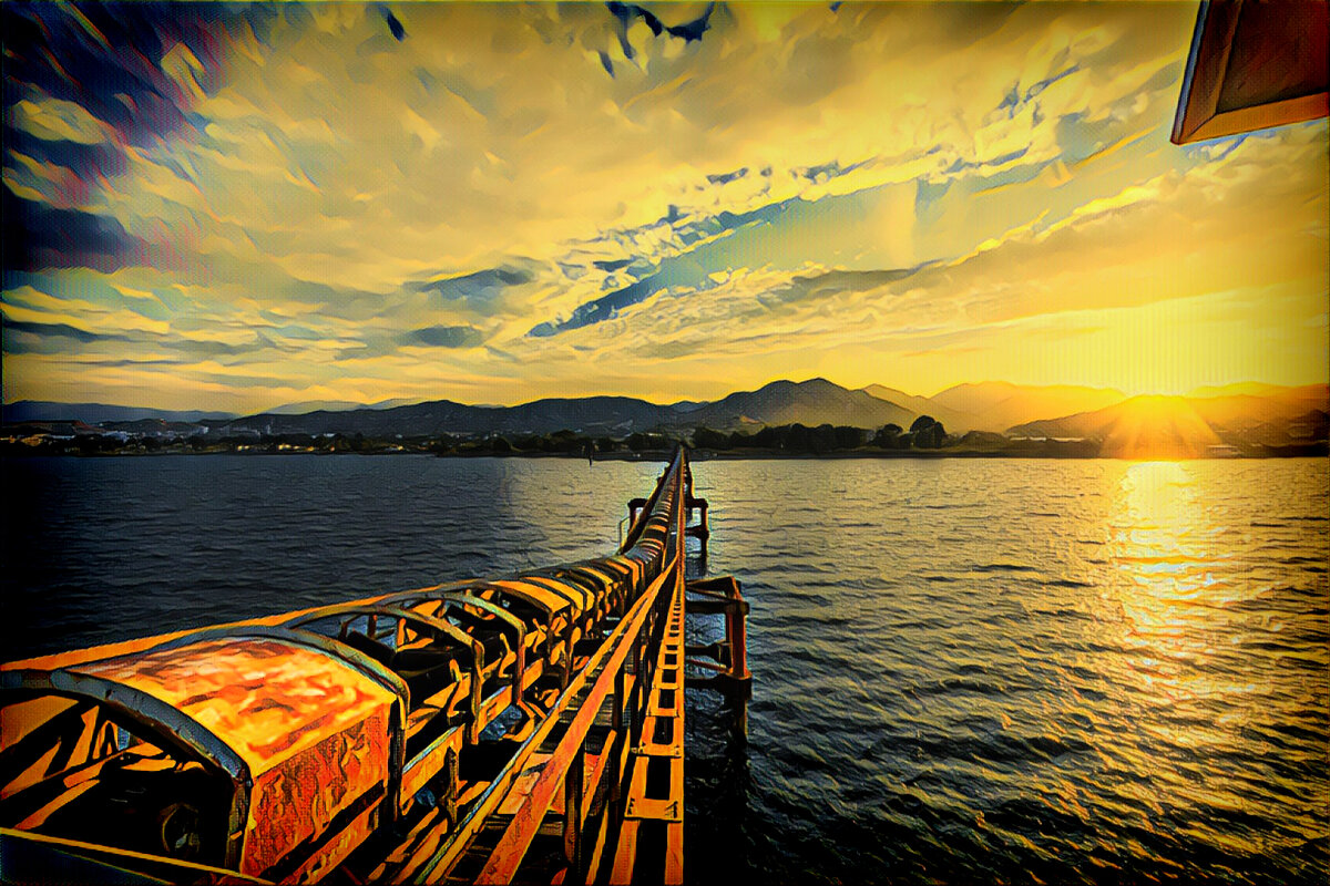 Наконец-то я добрался до края пирса! Уходящая за горизонт ржавая полоска пирса сменилась видом металлического моста, соединявшего этот островок уединения с цивилизацией. Длина конструкции впечатляет — 500 метров до берега, а вся конвейерная лента почти 800.
