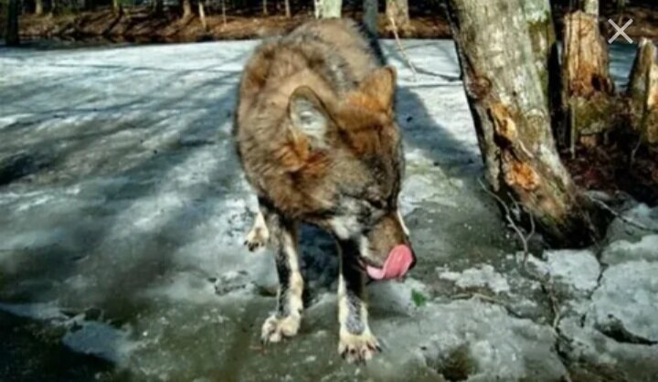 А произошла эта история вечером, я со своей сестрой катался на велосипеде, было часов шесть вечера, но еще светло. Вдруг смотрю, сестренка оторопела и смотрит в противоположную сторону. Я оборачиваюсь – волк в метрах двухстах. Я сразу в панику, но вспомнил, о чём старшие наставляли, быстро сестру за руку взял и к деревьям пошел, благо рядом большой старинный дуб был, а на нем дощечки прибиты в виде лестницы. На этом дубе раньше кто-то пытался построить дом на ветвях, но так и не достроили его, и остались только пару досок, которые должны были быть полом этого строения. Мы на них и расположились. Сидим, ждем, пока волк убежит. А он ведь не бежит. Медленно так, не торопясь, идет в сторону дуба, не сворачивает. А я смотрю на него и понимаю что он какой-то не такой, благо волков там навидался, большинство только мертвые были, но, в принципе, представлял себе, что такое волк – большой, лохматый, желтые глаза. А этот был совсем другой, вот только я не мог понять, что в нем не так. Подходит, значит, этот волк к нашему велосипеду и давай грызть покрышки. Сначала первую, затем вторую. Перегрыз, подошел к дереву, поставил передние лапы на ствол дерева и на нас смотрит. Тут то я и понял, что с ним не так. На спине горб огромный, и глаза – не желтые, а красные, вот только не зрачки, а полностью весь глаз красный, как кровь. Вот тогда то мне на самом деле страшно стало, по телу дрожь. Сестра тоже как увидела, сразу разревелась. А волк стоит и не отходит, сел возле велосипеда и мне в глаза смотрит. Сестра все ревет и ревет, я у неё спрашиваю, мол, чего ты так разревелась, а она только сильнее плачет и маму зовет. Докричатся не до кого, до ближайшего дома, где-то километра с пол, и посадка между нами.