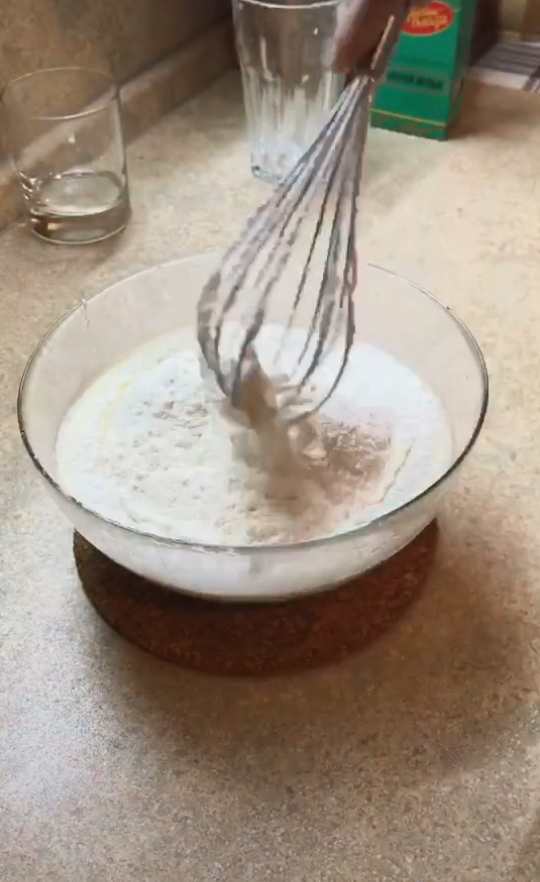 Добавляем 250 грамм муки, чайную ложку соды и все перемешиваем.