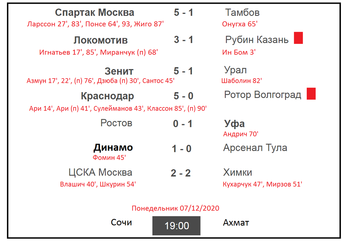 В 17 туре чемпионата России Спартак порадовал своих болельщиков крупной победой над Тамбовом (5:1). Москвичи 4 игры не проигрывают (2 выигрыша, 2 ничьи).