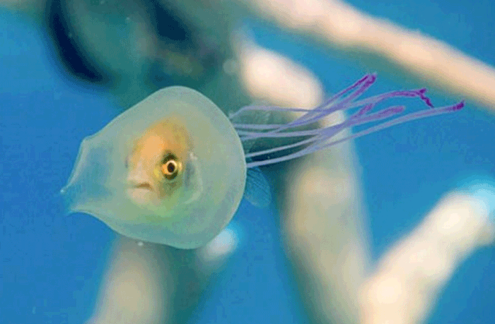 Оказалось, что рыба находилась внутри медузы и все еще контролировала ее движения.
