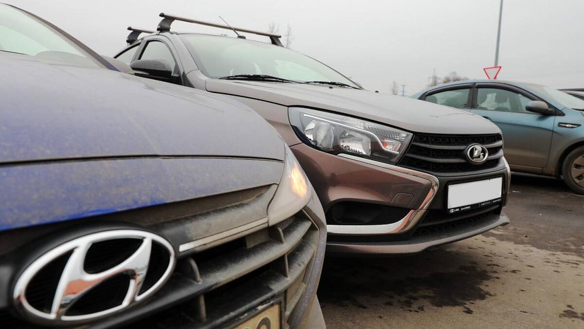 Lada приходится ожесточенно конкурировать с иномарками (на фото Hyundai Solaris и Lada Vesta) /Максим Стулов / Ведомости