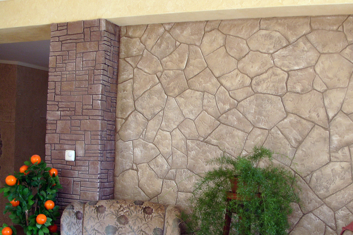 Этот материал предназначен для облицовки внутри и снаружи помещения. Каменные обои легко режутся ножницами или ножом, можно делать различные инкрустации из камня.