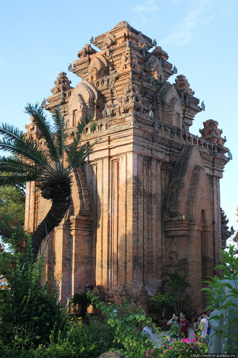 Чамские Башни наверное самый известный исторический объект города. Этим красным пирамидальным зданиям более 1000 лет. Видны они из многих уголков города, а уж с моста через реку Кай не увидеть их практически невозможно. Находятся они на вершине горы Ку-Лао. Башни По Нагар были частью храмового комплекса, построенного в 7—12 веках . В течении 5 веков было построено 10 башен, но до нас дошли только четыре. Храмы в башнях и сейчас являются действующими, поэтому в них часто проводятся буддийские церемонии, а также целый ряд ритуальных обрядов. У входа комплекса стоят толстые колонны, которые сопровождали страждущих к подъему на гору. Сейчас этот вход закрыт для того, чтобы как можно дольше сохранить старые ступени. Для туристов предназначена другая лестница, выстроенная слева от колонн. Поднявшись наверх перед осмотром башен окинем взглядом город. Он отсюда виден как на ладони.На площадке на самой вершине стоит сейчас четыре башни. Самая старая из них и самая главная Северная башня сооружена в честь матери королевы в 817 году. Ее высота по разным источникам от 23 до 28 метров. Вход в башню украшен изображением бога Шивы, танцующего на быке, а внутри можно увидеть каменную статую, которая изображает саму богиню По Нагар с десятью руками, сидящую в позе лотоса.От Северной башни слева находится Центральная башня. Внутри нее находится линга. Украшения на башне не сохранились. После разрушений осталась одна пирамидальная крыша. Южная Башня — самая маленькая. Здесь сейчас хранится лингам.Северо-Западная башня осталась без нашего внимания. Она богато украшена снаружи. Возле ее стен в этот день можно было увидеть национальные танцы в исполнении местных танцовщиц. За Северной башней находится небольшой музей. Здесь в старых фотографиях размещен рассказ о состоянии башен и их реконструкции в совсем еще недалеком прошлом. Так же можно увидеть древние одежды чамов и элементы внутреннего убранства храмов. Осмотр башен не займет много времени, так как территория очень компактна. Для туристов здесь предусмотрена бесплатная аренда одежды, чтобы закрыть оголенные участки тела. Об этом перед входом в храмы есть соответствующая надпись предостережение.