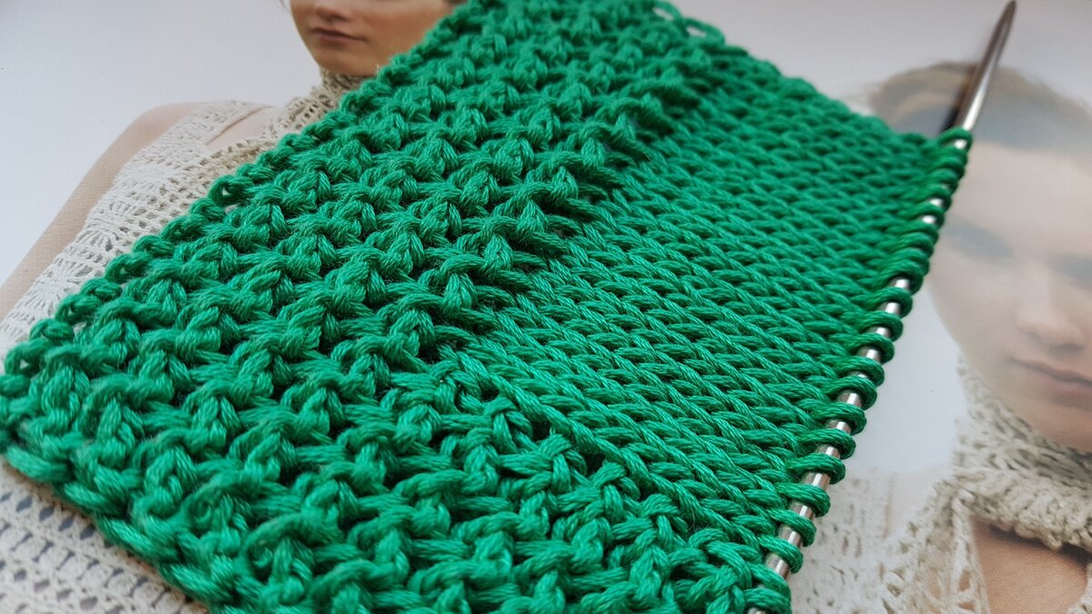 2-ой ряд: кромочная, далее вяжем как первый ряд,