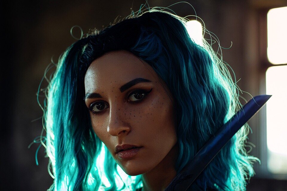 В каждом городе нашей страны есть так называемые "Заброшки". Это бывшие школы, заводы, склады и незаконченные стройки. Бывают даже целые санаторные комплексы пустуют десятки лет. Я встречал такие в Калязине и Гагре. Но не об этом.. У нас была идея поснимать в одной из таких локаций. Образ хоть и простой, но оригинальный - синие волосы и меч придают некую оригинальность. Нам кстати очень повезло с