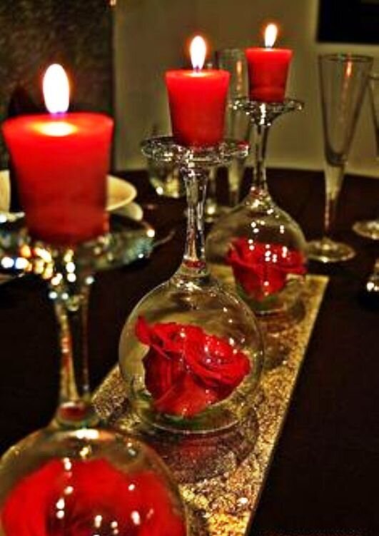 До Нового года остается уже меньше месяца. Даже если Вы уже нарядили квартиру, никогда не поздно добавить еще пару ярких украшений. Я подобрала несколько вариантов простых, но эффектных украшений со свечами. Свечи как мне кажется, создают очень теплую атмосферу в доме, таинственную и праздничную. (Все фотографии взяты из открытых источников в интернете.) Для оформления стола такими подсвечниками достаточно найти: Подставку под бокалы можно легко сделать своими руками. Взять подходящего размера картонку и обернуть блестящей оберточной бумагой золотого или серебряного цвета. А эти гламурные бокальчики тоже с живыми цветами, но уже с орхидеями. На ножку бокала привязать бантик, на свечу приклеить стразы, на подсвечники тоже намотать стразы. Этот подсвечник сделать очень просто. Для него нужно: В этом случае тоже все просто: А вот еще подсвечники-подставки под пирожные из бокалов и елочных шариков. Правда необычно так подавать пирожные? А под бокалы можно положить не только елочные шари