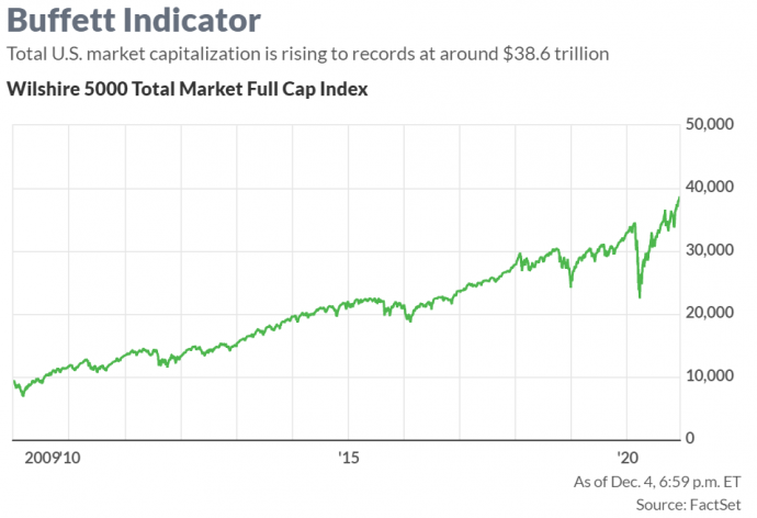 Безусловно, критерий Баффета, который босс Berkshire Hathaway ранее провозглашал «лучшим единичным показателем того, где находятся оценки в любой данный момент», неоднократно отмечался во время недавнего постпандемического ралли. , как тревожный признак того, что рынки опережают самих себя и чрезмерно оптимистичны по поводу прогресса вакцины COVID-19.