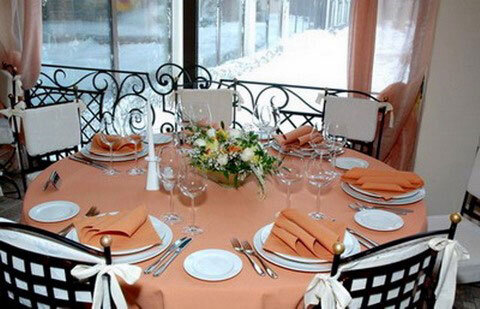 В наиболее торжественных случаях столы покрывают двумя скатертями, что является сейчас настоящим писком моды. Каждая из них разного цвета, которые вместе должны гармонично сочетаться. Верхняя скатерть получила название наперон.