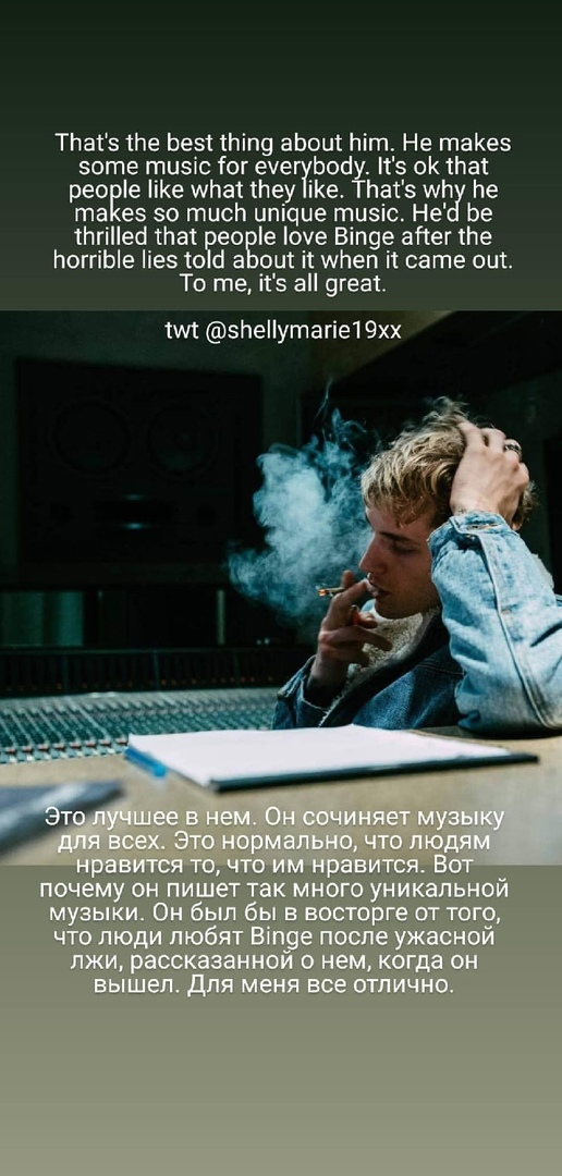 "Это лучшее в нем. Он сочиняет музыку для всех. Это нормально, что людям нравится то, что им нравится. Вот почему он пишет так много уникальной музыки. Он был бы в восторге от того, что люди любят Binge после ужасной лжи, рассказанной о нем, когда он вышел. Для меня все отлично."