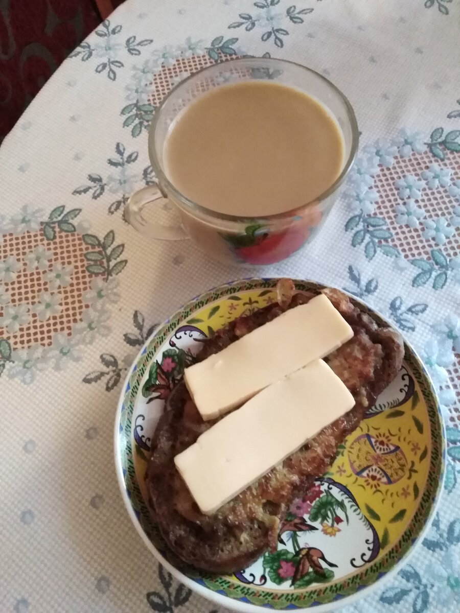 как обычно кофе без сахара и без заменителя,но с молоком.Бутерброд с