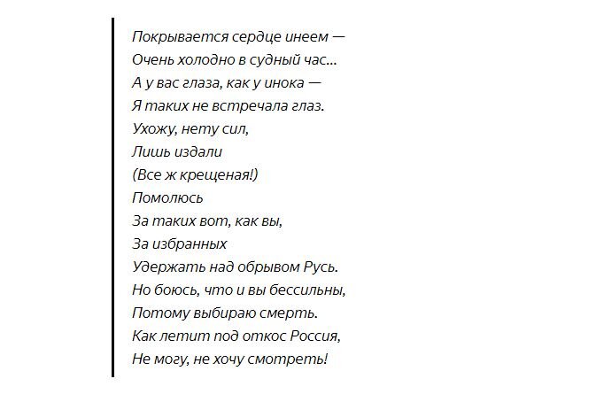 После смерти мужа поэтесса так и не смогла найти новых смыслов своего существования.