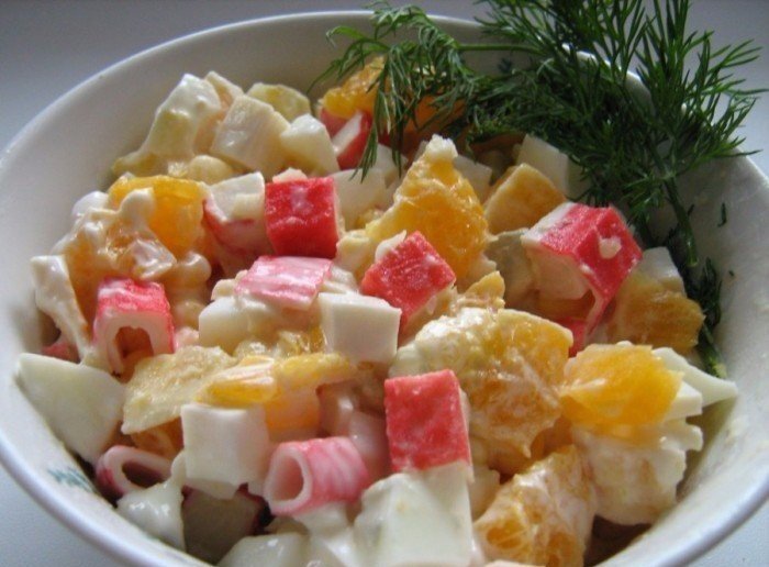7) КРАБОВЫЙ САЛАТ С АПЕЛЬСИНАМИ