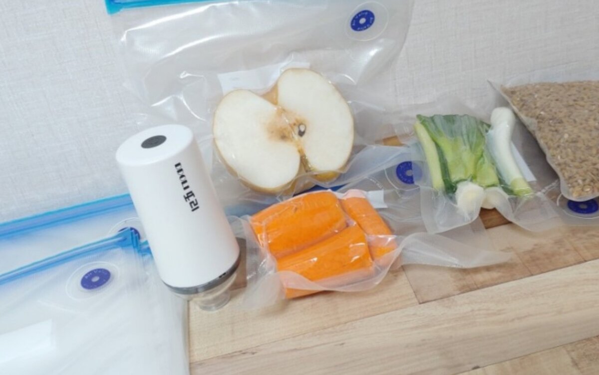 Как бы мы ни старались при приготовлении блюд, использовать все ингредиенты, на оставлять небольшие кусочки фруктов, овощей, мяса, рыбы и т.д. получается это достаточно редко. А оставшиеся продукты отправляются в холодильник, где будут ждать своего часа, занимая место и начинают отсчитывать время до момента, когда их уже использовать в еду будет нельзя. Особенно это проблема часто встречаема у мамочек с маленькими детьми, которым постоянно приходится готовить детское питание. Много не сделаешь, а если готовить по чуть-чуть, то всегда остаются продукты, которые хочется сохранить свежими и не обветренными, лишенными посторонних запахов. У меня в холодильнике всегда хранилась куча пакетиков с недоиспользованными продуктами. Больше всего мне во всем этом не нравится, что внутри пакетов, зачастую, еще и конденсат в виде капель появляется, а в морозильной камере так вообще лед намерзает. Но, буквально несколько недель назад, муж купил вакуумный упаковщик. Он маленький, легкий, мне он очень понравился. С ним удобно, еще и свободное место появилось на полках.