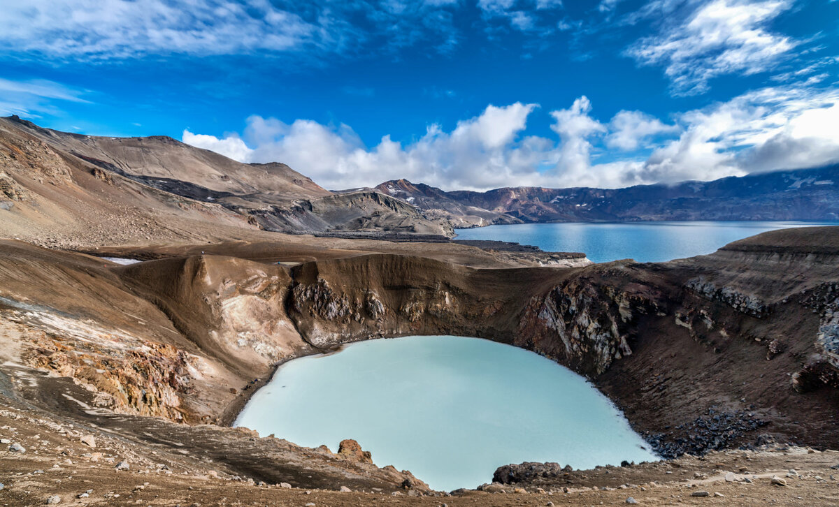 В самом центре Исландии находиться полный тайн вулкан Аскья —красавец среди вулканов Исландии. Он расположился на востоке лавового плато и южнее его ползет ледник Ватнайёкюдль.